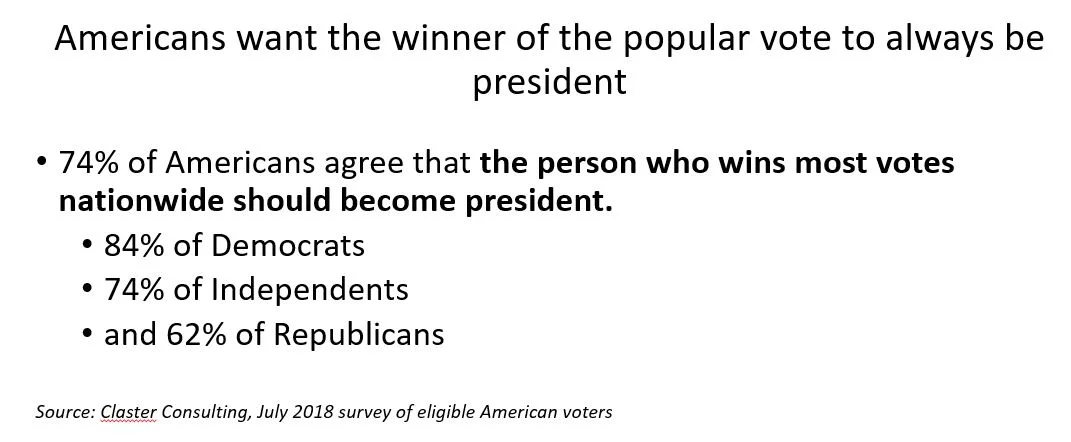 Item 7: If the president were the person who won the national popular vote, then a “disproportionate majority of voters from the largest states” would be “imposing their will on the more vulnerable minority in smaller states.” There are many things wrong with this sentence, but I conclude with noting only three: (i) a majority is not “disproportionate” under a popular vote system; it is proportionate to the votes cast; (2) under the existing, anti-democratic system the “vulnerable” minorities in every state are “imposed” upon because their votes for the runner-up are discarded, meaning never counted with like-minded voters in other states possibly to form a majority opinion; (3) no candidate seeking a national win would ignore voters anywhere, because campaigns are not that dumb, whereas in the current system the two major parties do not campaign in about 40 states, with more than 80% of the population.